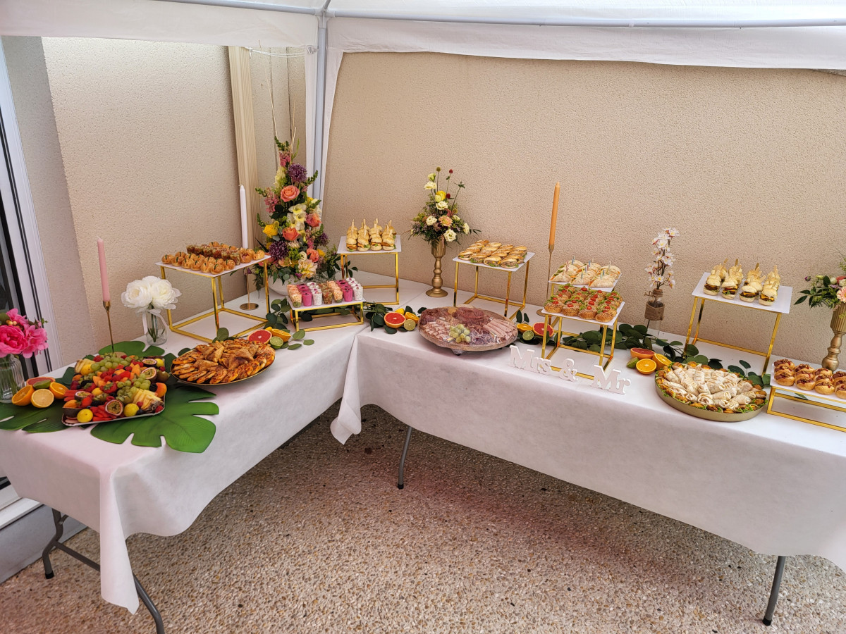 Mariages et événements privés Création de menus sur-mesure pour vos évènements - mariage, vin d'honneur, anniversaire, baby shower - avec installation et décoration personnalisée.